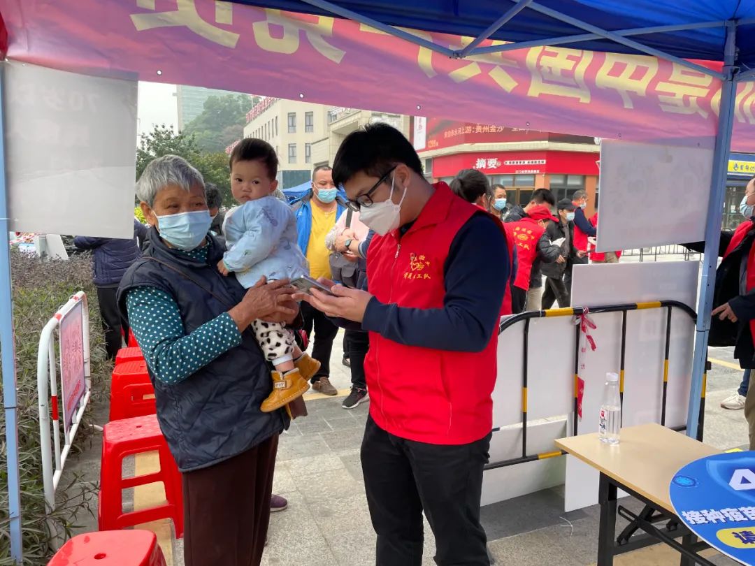 白沙街道青年广场采样点为老幼弱孕开通绿色通道,党员志愿者帮助只有老人机的人群扫葵花码并录入资料,以实际行动展现党员风采,受到社区居民点赞好评。