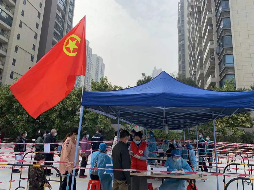 白沙街道海逸峰璟采样点党旗飘扬,党员先锋队在行动!