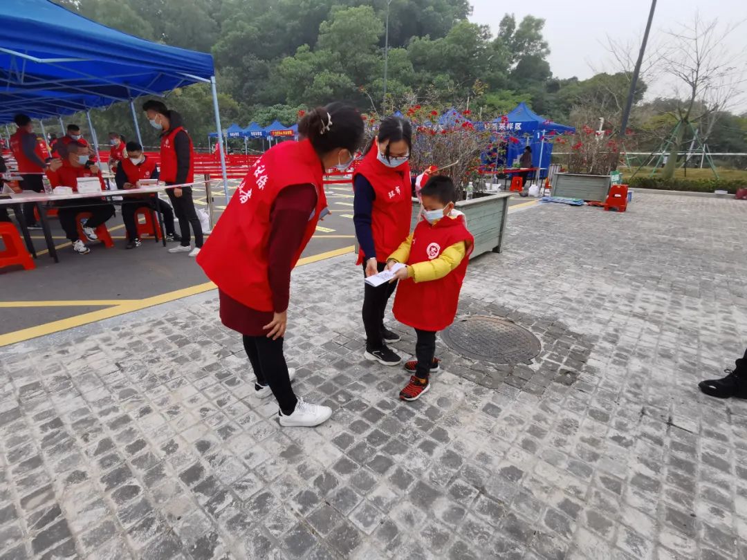 在环市碧桂园社区群星公园采样点,小小志愿者,传达防疫正能量!