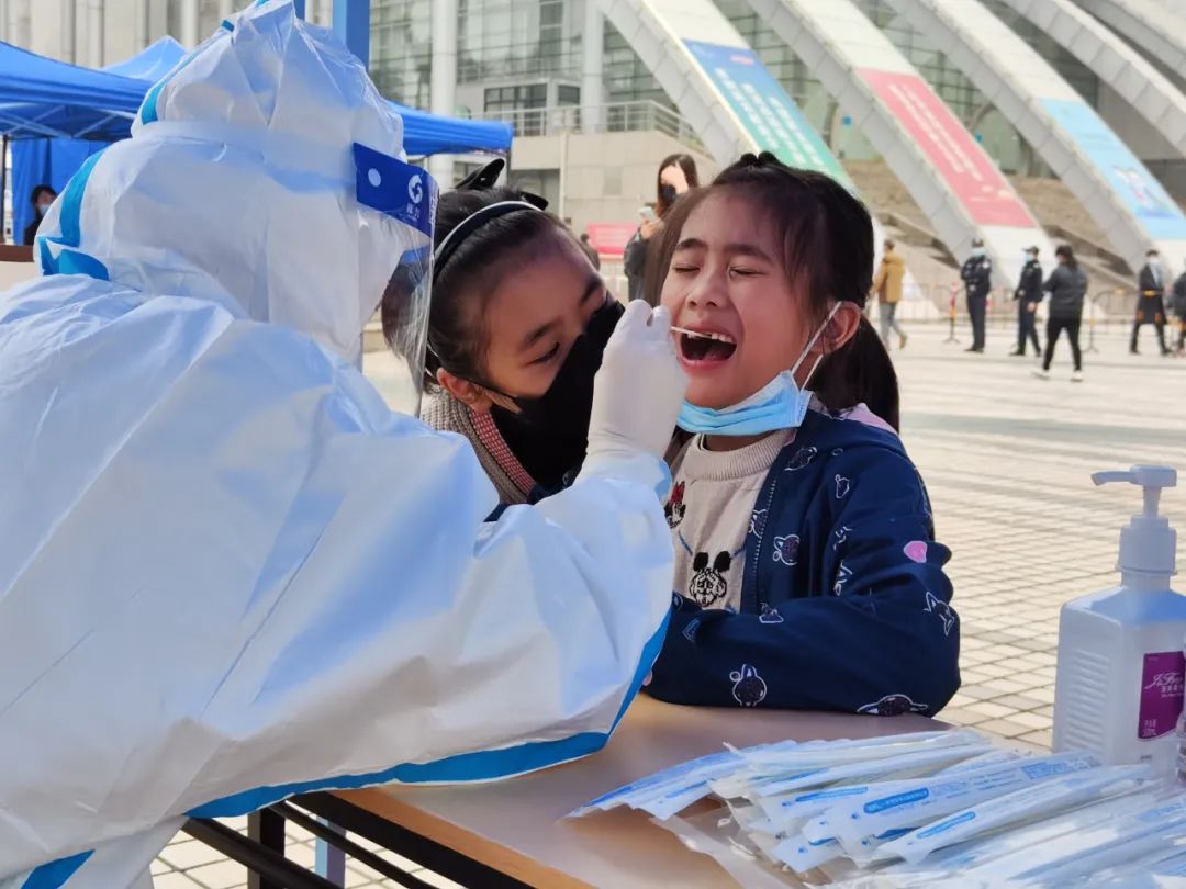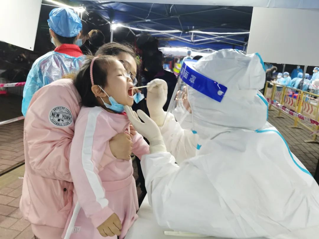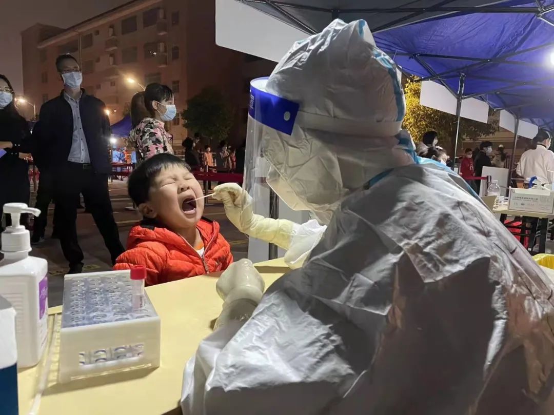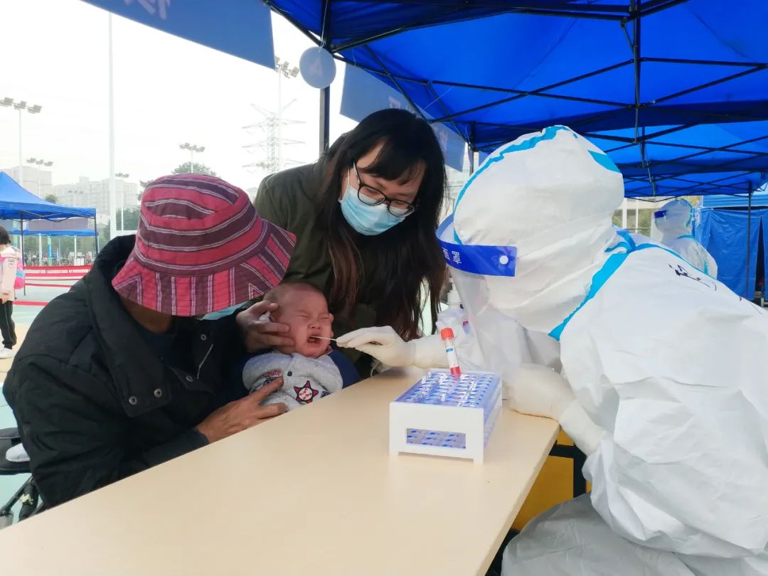 在环市丰雅社区丰乐公园采样点,小小萌宝最勇敢,“眯着眼睛,仰望星星”。一个都不能少 上门测核酸