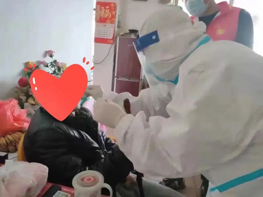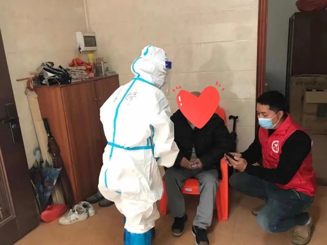 荷塘镇中心广场采样点为行动不便老人上门核酸检测。