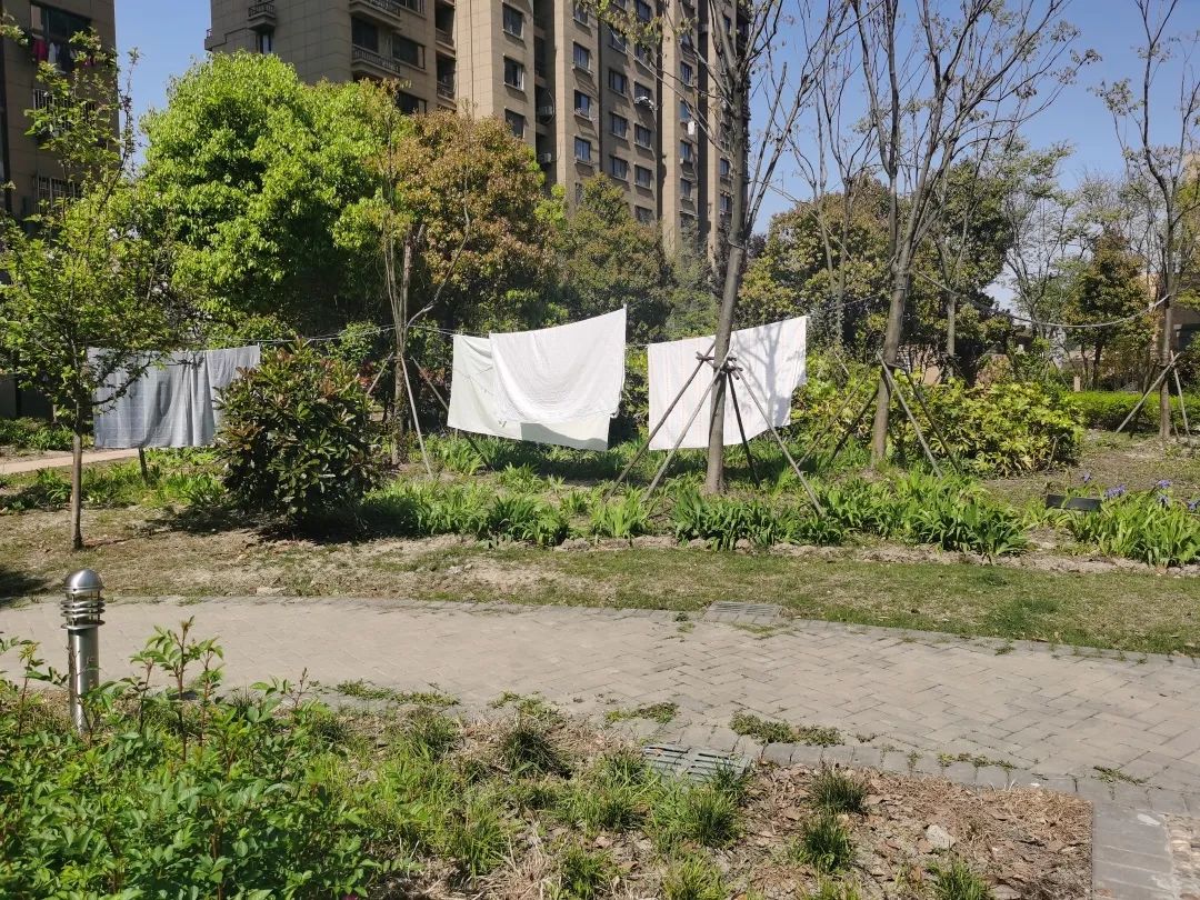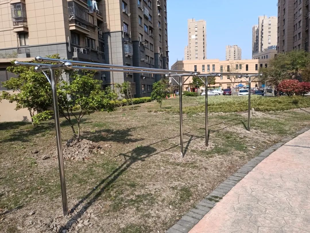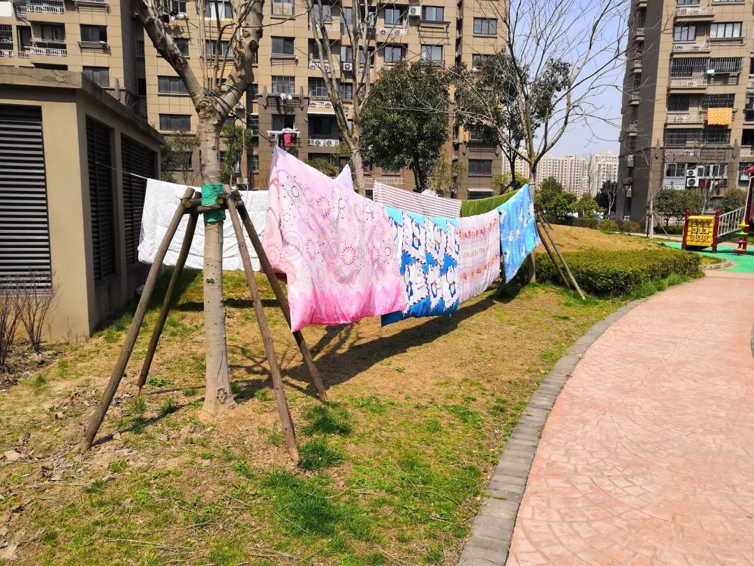 为解决居民晾晒问题,规范晾晒行为,在小区内选取合适位置作为公共晾晒区,安装共享晾衣架,既满足居民晾晒需求,又能美化小区环境,从根源上解决了小区私拉线乱晾晒问题。