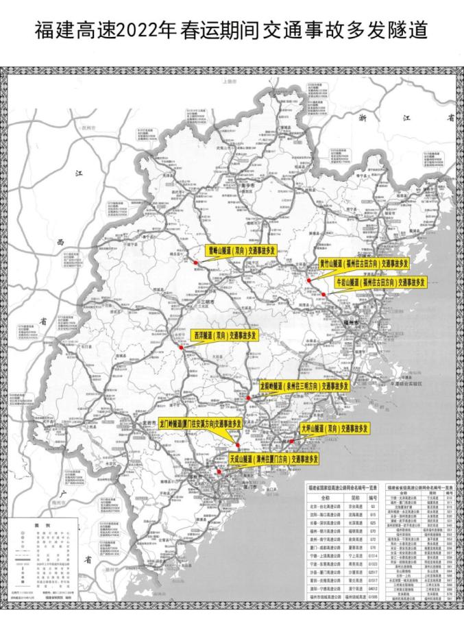 2.辖区高速公路隧道较多,如京台高速天龙山隧道、牛岩山隧道,福州绕城高速福州南连接线四峰隧道等是事故易发多发路段,驾驶人进入隧道前应开启大灯,控制车速,严禁变道。