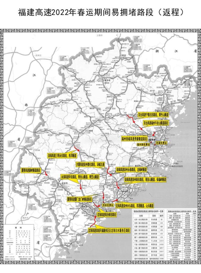 1.沙厦高速隧道多、弯道多、坡多,车道较少,节假日通行易拥堵,厦门往三明(南平、江西)方向返乡车流建议绕行永漳高速。