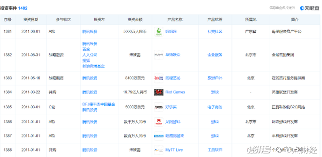 腾讯2011上半年投资案例(来自天眼查)