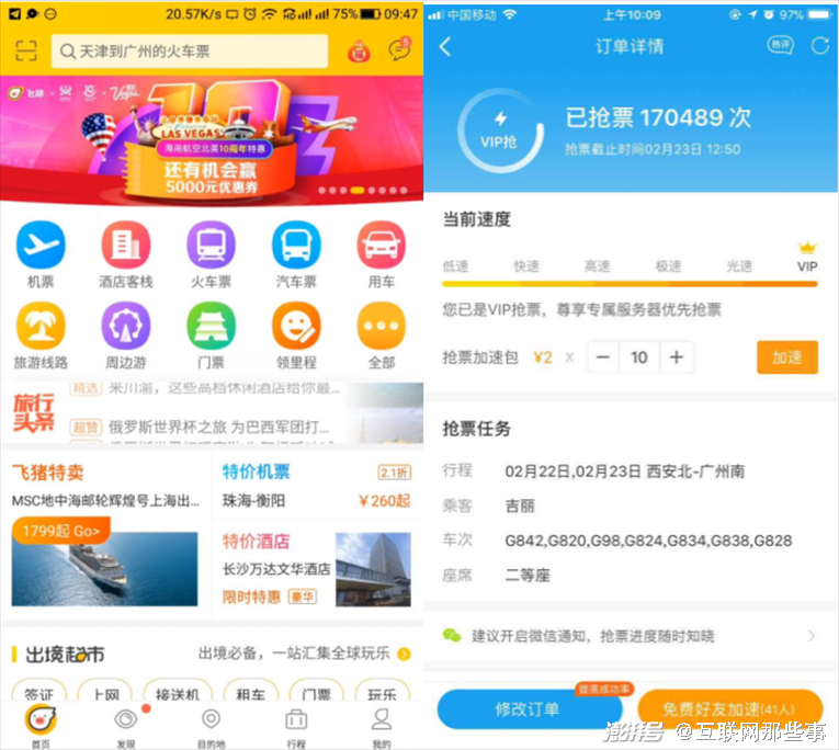 而携程虽然没有360的程序员“铁军”,但是奈何其有钱,通过买买买收购“智行火车票”,推出加速包服务。