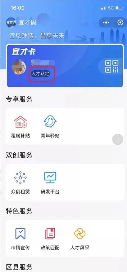 已实名认证的用户,在宜才码首页,点击“人才认定”。