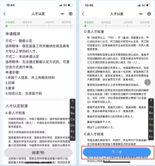 2.选择您要认定的人才分类与子分类,点击“下一步”。