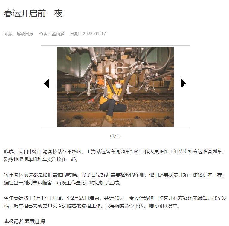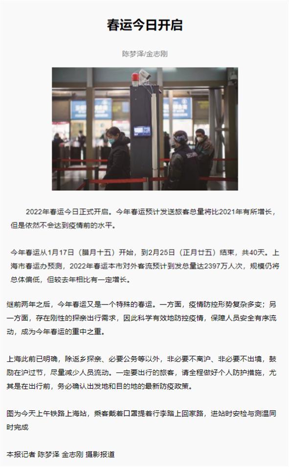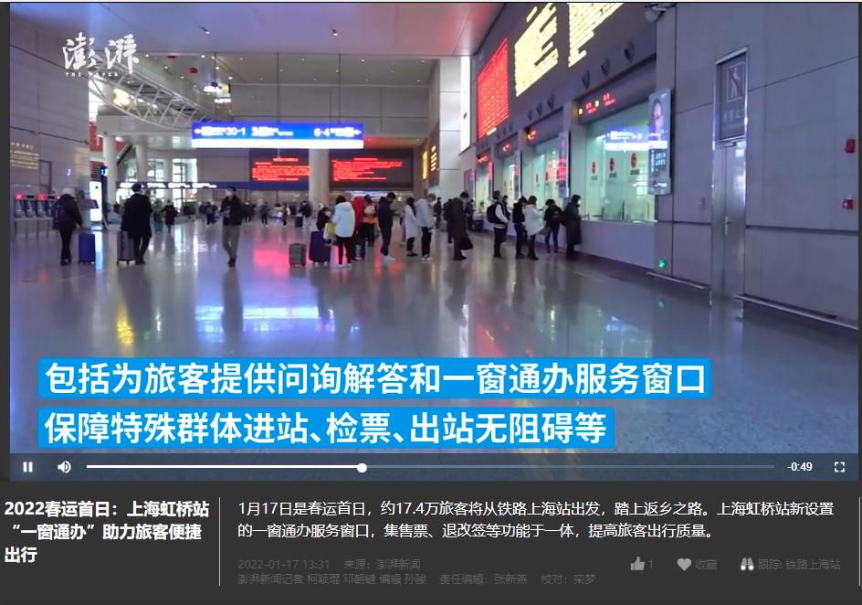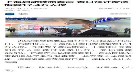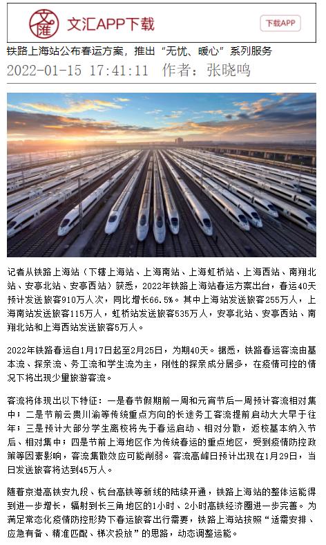 2022年春运今日开启 铁路上海站:2022年春运期间预计发送旅客910万人次