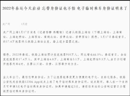 春运大幕今天开启 铁路客流呈现“摊平拉长”趋势《文汇网》
