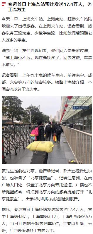 上海 2022年春运今日开启 三大火车站预计今天发送旅客17.4万人《正点财经》