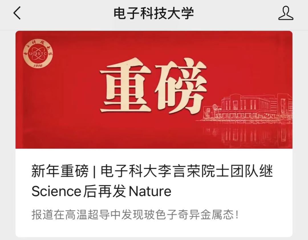 1月12日,Nature发表了来自电子科技大学的研究论文。