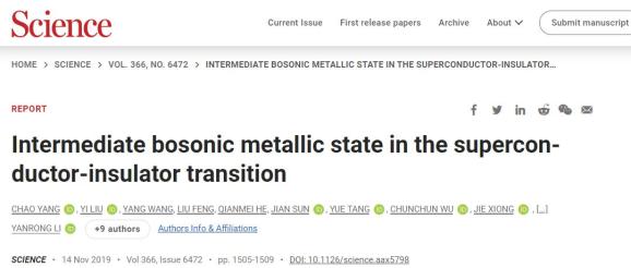 2019年底,杨超以第一作者身份发表了学校首篇Science正刊论文,这项研究成果解决了三十年来悬而未决的量子金属态问题,并荣获2019年度“中国高校十大科技进展”和首届川渝科技学术大会优秀论文特等奖等众多奖项。