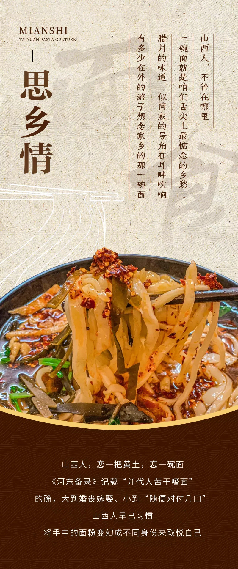 地处山西中部盆地的太原,历来被视为山西面食的核心地区。“天下面食数山西,面食之都在太原”,这是古太原的“面霸”写照。太原面食有不同的做法、不同的食材、不同的口感,经过一双双巧手和细密的心思,将日常点亮,温暖彼此。面食味道迥异,但幸福的滋味,却何其相同。