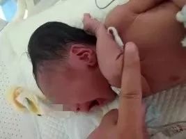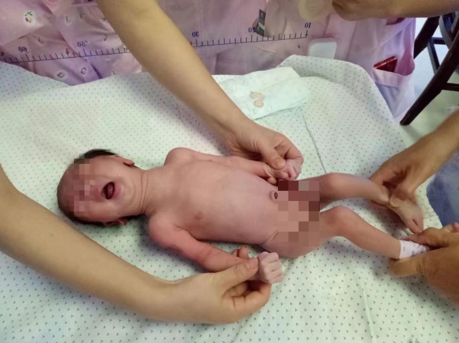 扬扬之子,胎龄39周,因“生后青紫、肌张力低下”入院。