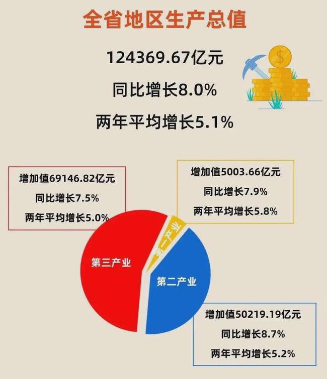 广东省统计局1月20日公布的数据显示,根据地区生产总值统一核算结果,2021年广东地区生产总值为124369.67亿元,同比增长8.0%,两年平均增长5.1%。