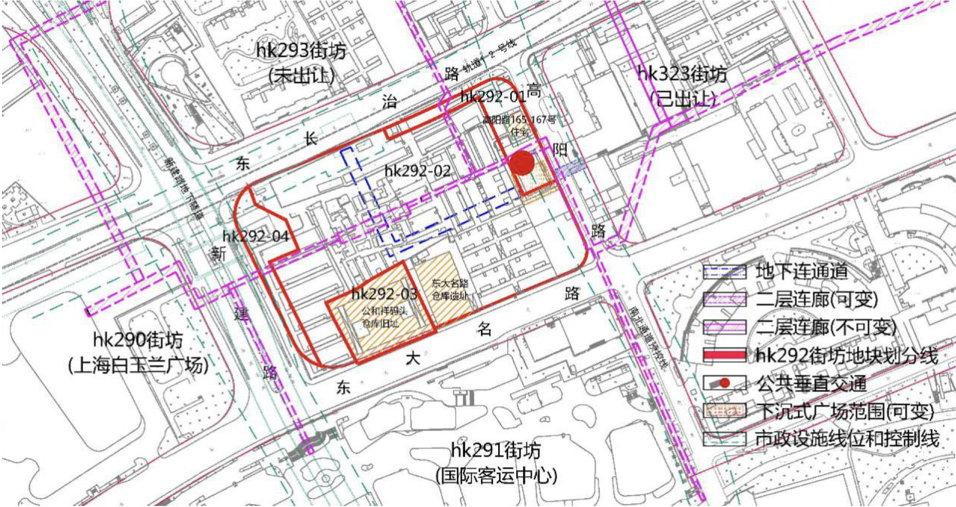 hk292-01地块内有一处优秀历史建筑(高阳路165-167号住宅为一栋民国时期的住宅,被列为上海市第五批优秀历史建筑名单),hk292-02、03地块内各有一处文物保护点,分别为东大名路仓库遗址和公和祥码头仓库旧址。