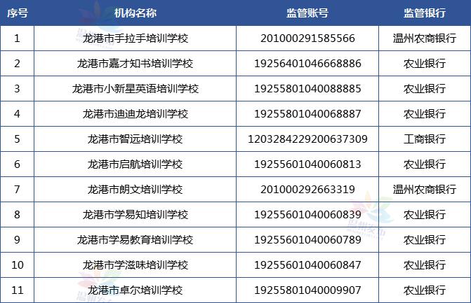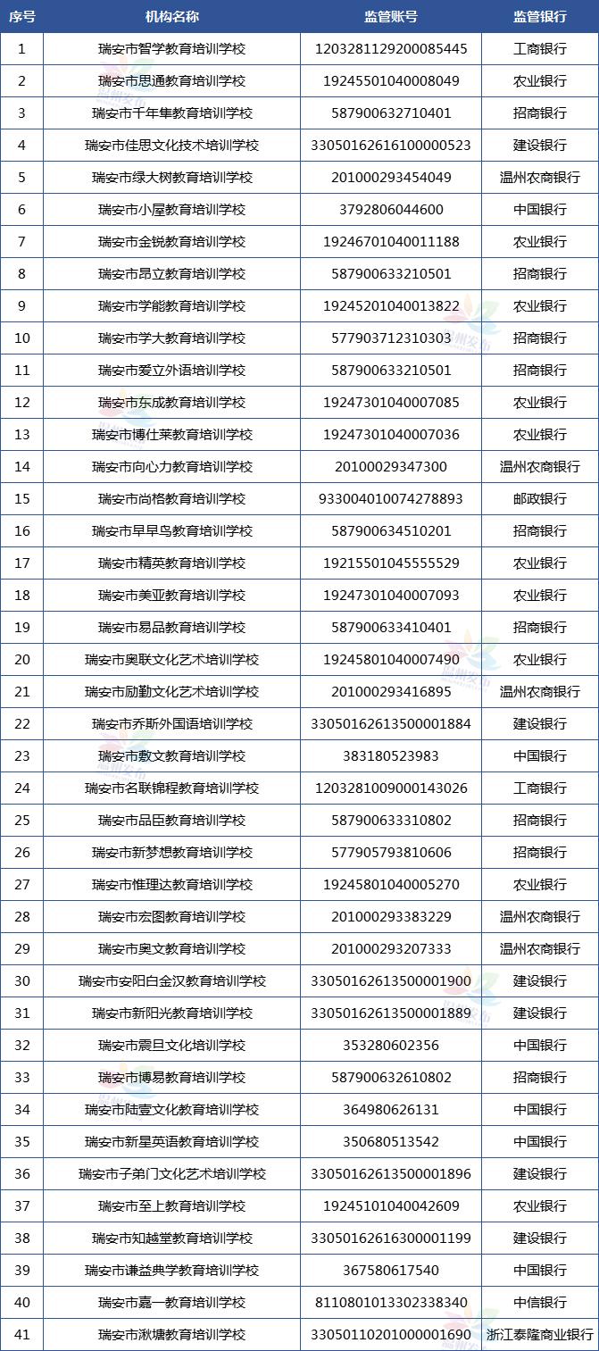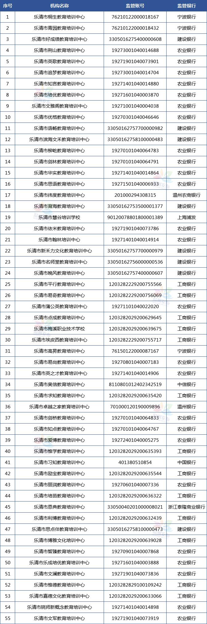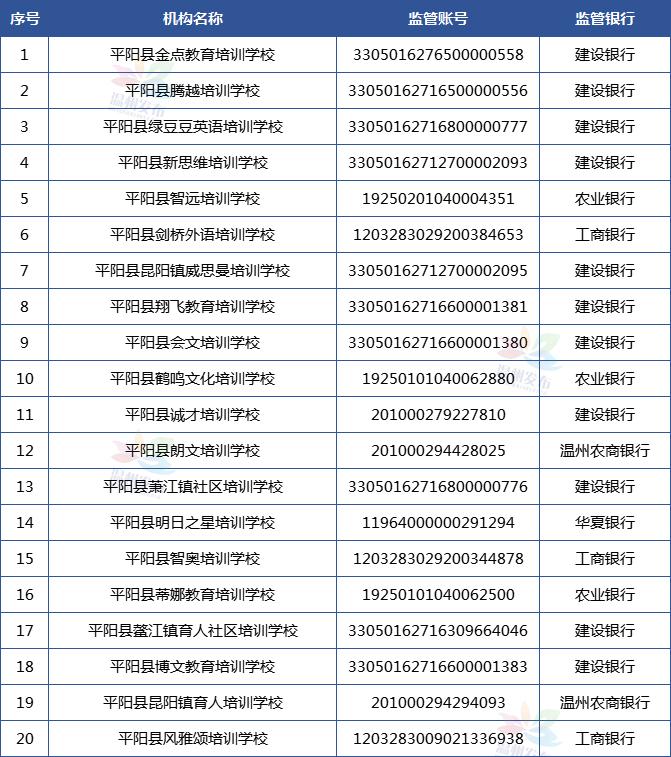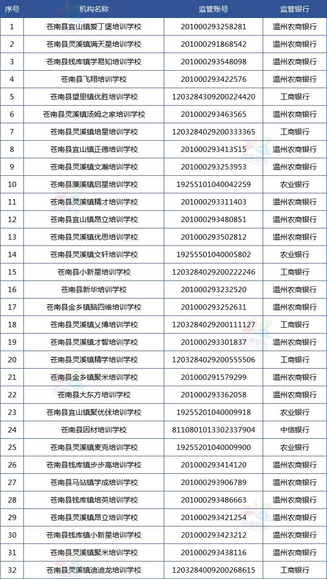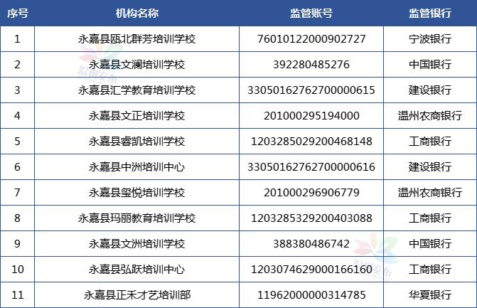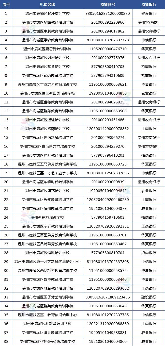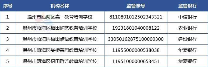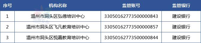 温州市学科类校外培训机构资金监管账户名单