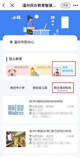 第三步:选择“校外培训机构”或“附近培训机构”,在线查询培训机构、课程的基本信息。