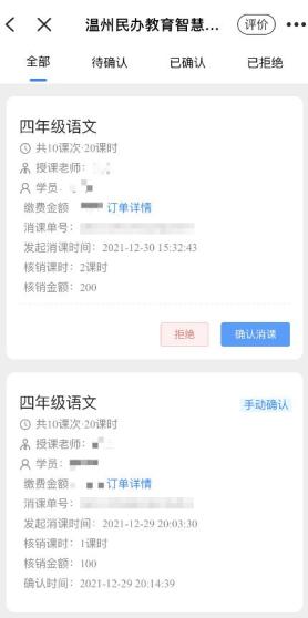 第五步:完成部分课程后可根据情况选择消课或拒绝。