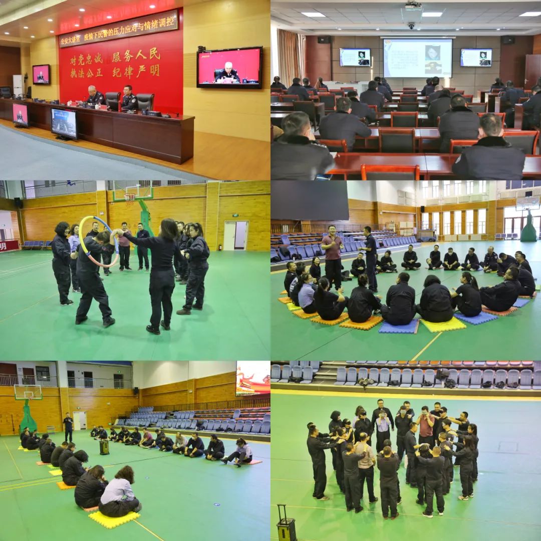 心理健康培训课程中,第五十四期司晋督警衔晋升培训班全体学员通过视频会议收看2022年第二期呼伦贝尔公安大讲堂心理健康专题讲座,聆听学习黑龙江省大庆市公安局心理健康中心卢国喜主任讲授的“疫情下民警的压力应对与情绪调控”讲座课程,学习掌握压力与情绪的控制,强化心理健康技能。同时,人民警察训练支队心理健康训练大队还为学员准备了丰富的心理健康团队辅导活动,通过“环环相扣”、“同舟共济”、“盲人拐杖”等等团队辅导小游戏,进一步放松学员精神,缓解疲劳和压力,调整心态,促进心理健康。