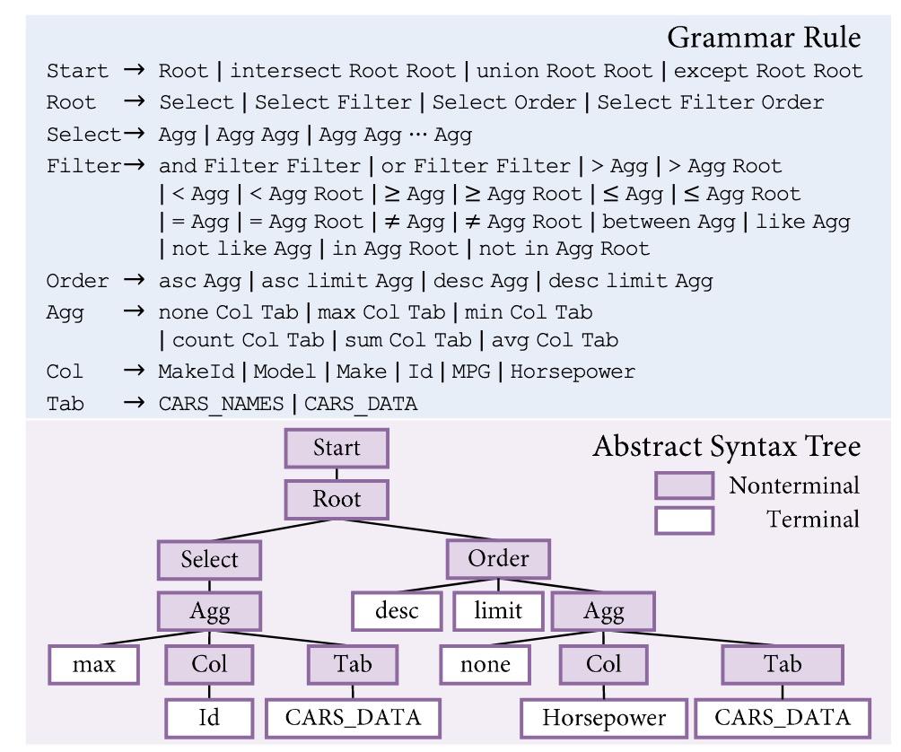 图 6:Text-to-SQL 任务中的树状解码约束示意图[11]