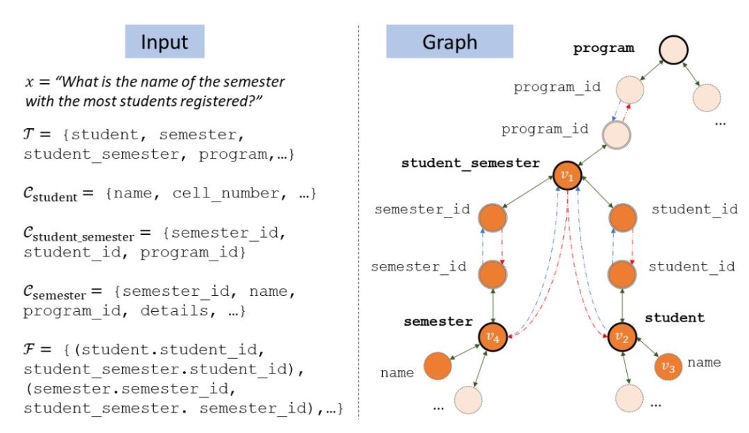 图 7:Text-to-SQL 中将 Schema 建模为 Graph 示意图[12]