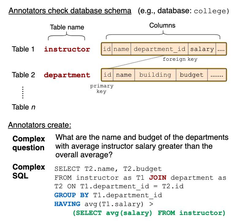 Spider [13] 是耶鲁大学 & Salesforce 在 EMNLP 2018 上提出的单轮、围绕多表、复杂 SQL 的语义解析和 Text-to-SQL 数据集。Spider 是目前 Text-to-SQL 领域最受关注的数据集,吸引了阿里达摩院、微软、Meta、亚马逊、百度等大厂的持续投入。
