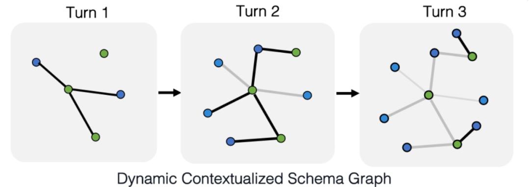 总体来说,SParC 和 CoSQL 遇到的共同挑战在于上下文建模,如何在上下文环境下共同建模自然语言问题、Schema,以及模式链接是亟需解决的问题。达摩院在 AAAI 2021 提出了一种基于动态上下文模式图的框架 R⊃2;SQL[17],可以联合地学习自然语言问题、数据库模式(schema)和其之间模式链接的表征,捕捉复杂的上下文依赖。