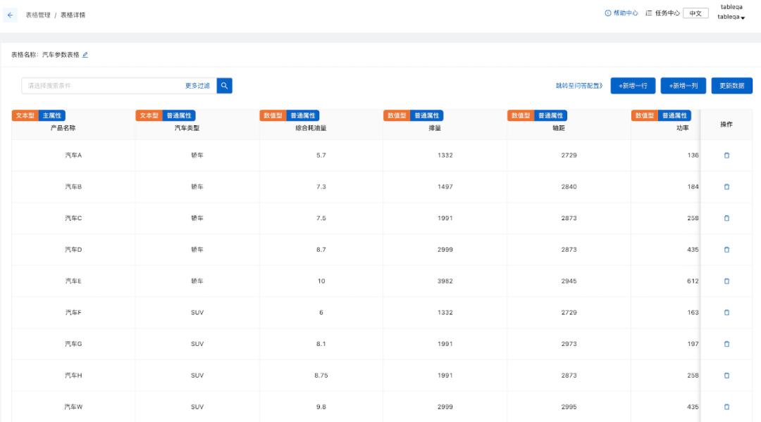 达摩院 Conversational AI 团队已经将本文介绍的预训练表格模型和相关 Text-to-SQL 技术应用于阿里云智能客服 (云小蜜) 的 TableQA 产品中。为满足不同场景下的训练和交付需求,表格管理、数据配置、模型训练、效果干预等功能已全部完成产品化,基本做到知识梳理低成本,问答构建高速度,模型训练好效果,满足各个场景的交付运维需求。目前已在多个项目中开始规模化交付。