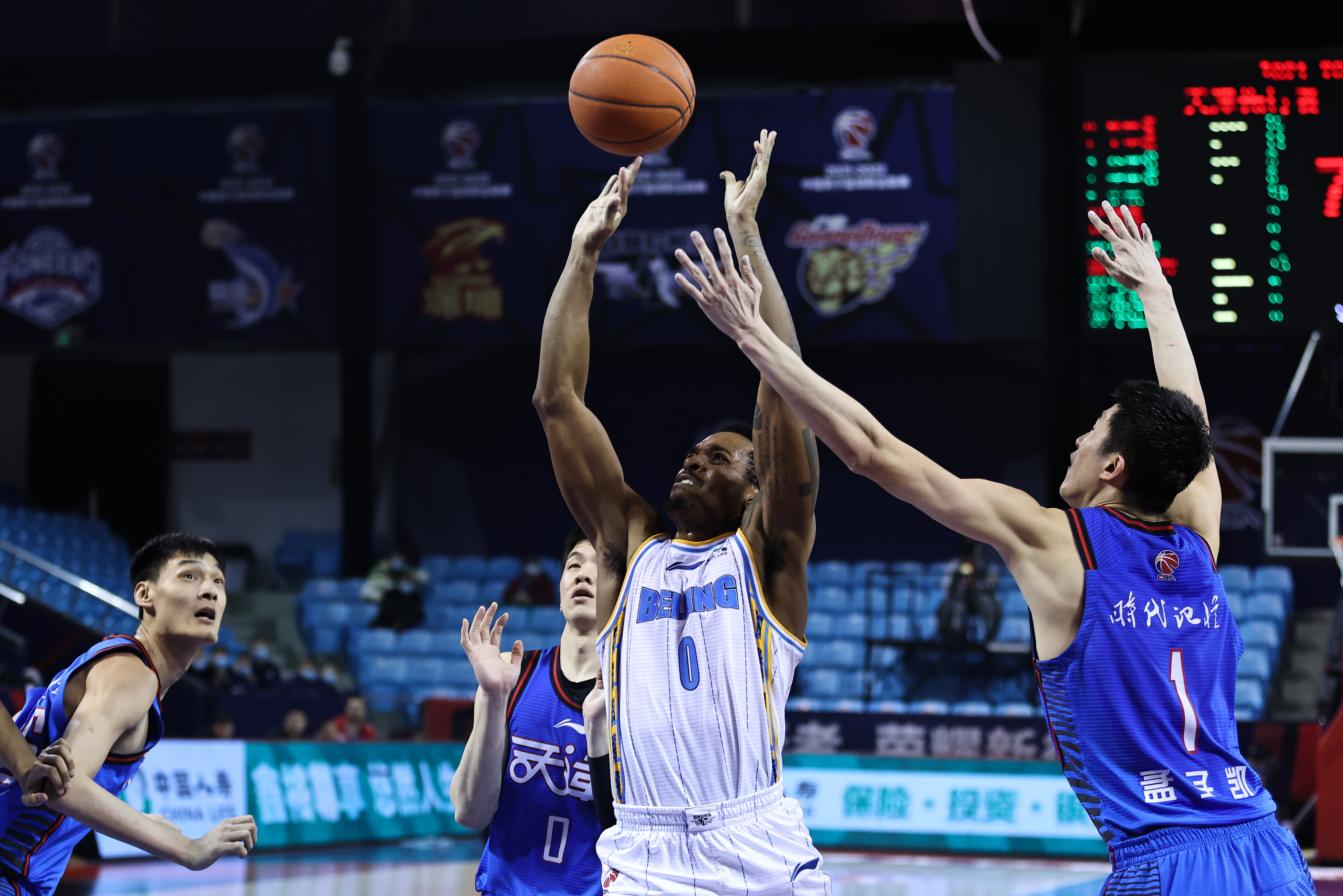 北京队外援布朗(中)首秀,他在上场的17分钟里砍下29分。