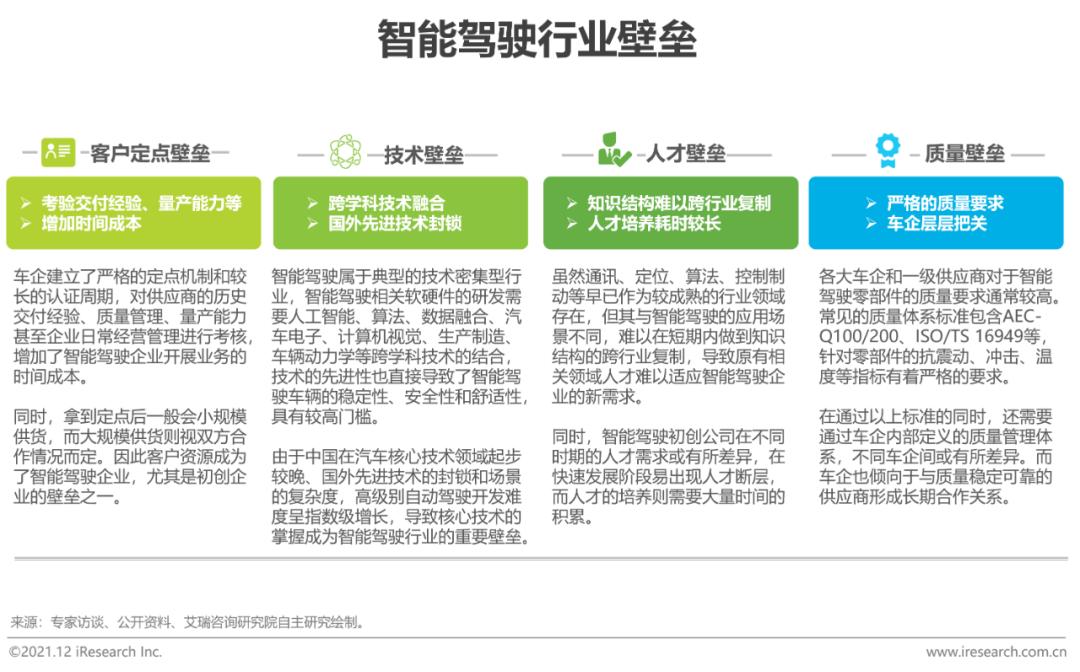 壁垒:客户定点、技术、人才和质量要求给企业进入智能驾驶行业创造了较大壁垒,但同时也保障行业有序长效发展。