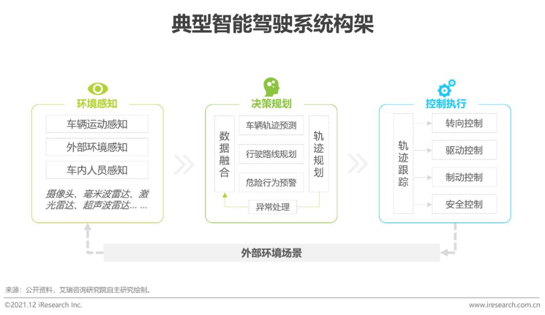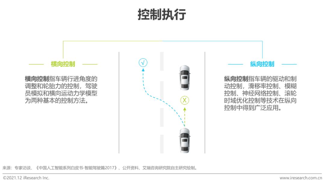 控制执行:通过驱动、制动、转向等达成车辆的横向及纵向控制,使汽车精准地按照决策规划实现有效的避让、减速、车距保持、转向等动作,解决“我该如何到达”的核心问题。