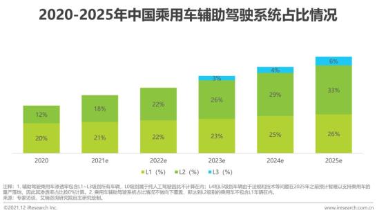 我国量产车辆正向L3等级演进,L2新车渗透率约12%