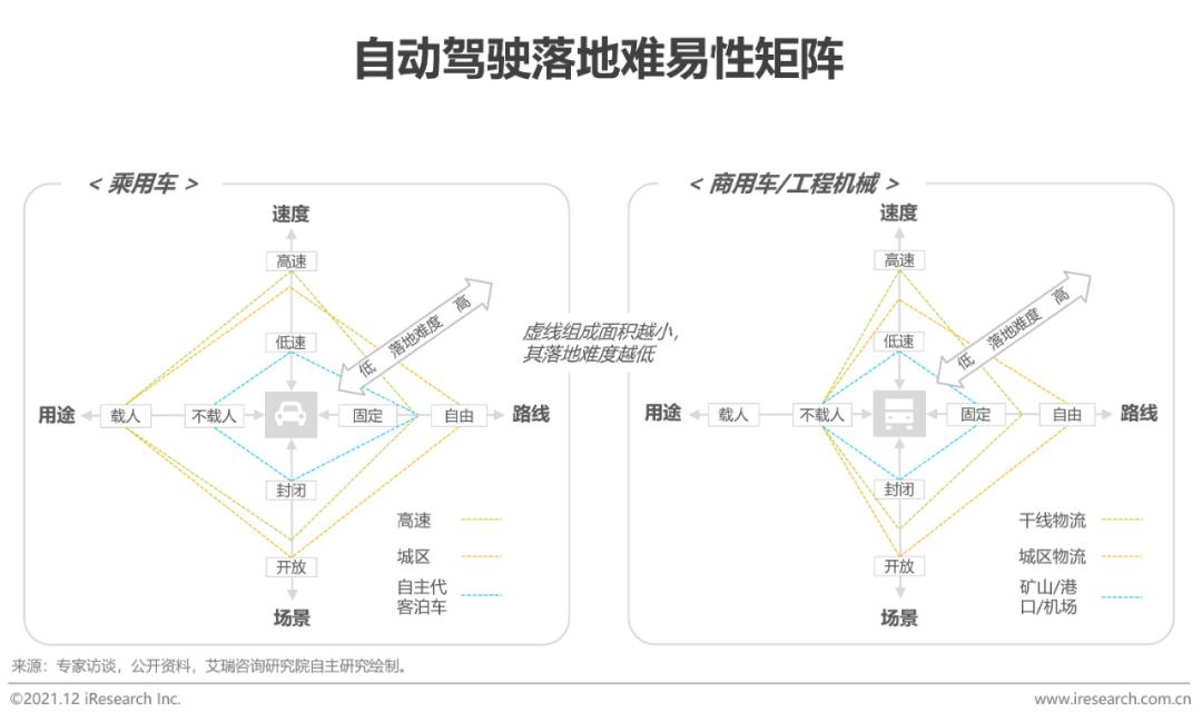 乘用车方面,由于自动驾驶法规、技术、场景复杂度等限制,严格意义上的L3等级以上自动驾驶短期内落地仍有一定难度。但自主代客泊车具有低速、场景封闭、固定路线和不载人的特征,同时可帮助车主减少停车时间,有望成为乘用车中最快量产落地的高级别自动驾驶功能。而在商用车方面,矿山、港口、机场等场景拥有同样的特征,同时可帮助企业降低人力成本,保障人身安全,将更多的人参与到价值更高的工作当中,因此短期内落地性较强。