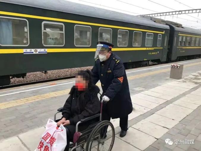 近日,定州站T253次列车移交一名腿部残疾旅客(无陪同),客运值班员马玉龙接到通知后立即将轮椅推到车厢门口去接应。定州站“580服务台”