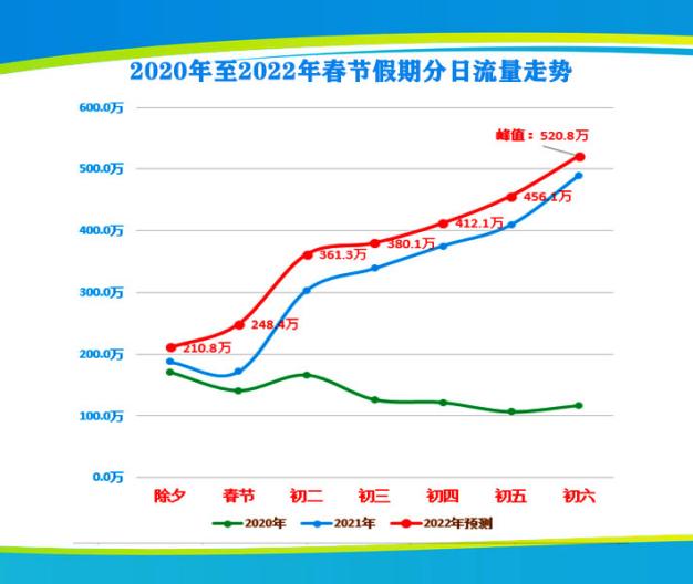 2月2日至3日(正月初二、初三),路网车流增长迅猛,局部车流井喷,以短途探亲访友和旅行为主,拥堵时段主要集中在当日10时至12时和16时至18时,期间高速公路路网车流可能呈现井喷态势,车流量大的路段易造成缓行和拥堵。