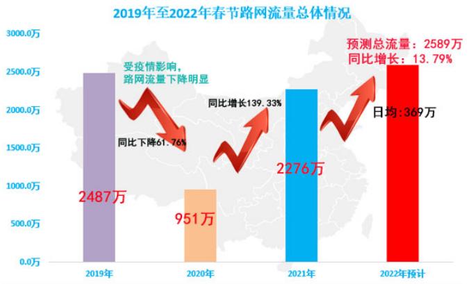 同日,湖南发布2022年春节期间全省高速公路路网运行态势研判专报。专报显示,根据省气象预报,春节假期内有新一轮较强低温雨雪冰冻过程,气温偏低。春节假期路网流量居高位运行,路网日均流量最大,潮汐现象明显,路网车型以探亲访友的小型客车为主,跨省探亲、返乡流仍然保持一定比例。重点路段、城市周边、枢纽互通路段安全保畅压力大,请大家提前规划出行线路,错时错峰出行。