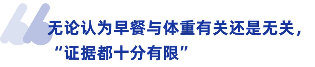 2016年发表的一篇综述,回顾了10项关于早餐和体重管理的研究。结论是,没有足够的证据证明或反驳,早餐会影响体重和食物摄入。吃早饭预防肥胖这个建议,还需要更多的证据来证明。