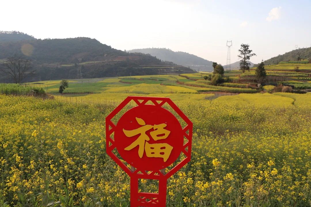 观赏塔甸油菜花的地点当数位于富塔线上的福家村,在那你可以用福家村的福字打卡美丽的油菜花风景,油菜花清新的香气,再沾满福家村的福禄,随风钻入您的心扉,既温暖了身心,也溢满了祝福。
