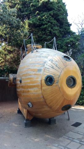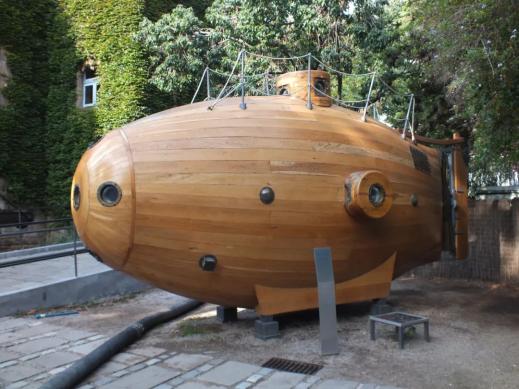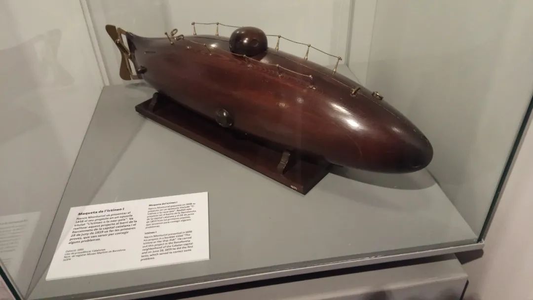 在巴塞罗那海事博物馆(Museu Marítim Barcelona)的院子里,陈列着一个用木头建造,既像马面鱼又像潜艇的装置。如果不看说明牌,你很可能会误把它当成是表现航海文化的雕塑,或者是已经倒闭的博物馆小卖部。然而,在160多年以前,真的有一艘长成这副模样的潜艇,曾在巴塞罗那港的海水中遨游。而且,它还有一个看上去像是梭鱼的“接班人”。
