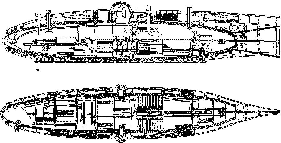 蒙图里奥决定孤注一掷。他借钱买了一台有6个气缸的蒸汽机,再自己动手将它分成了两部分,由两个不同的锅炉来提供蒸汽:供水面航行的那一部分蒸汽机,使用传统的燃煤锅炉;供水下航行的那一部分蒸汽机,则是潜艇上技术含量最高的部分,因为它的锅炉不需要常规燃料,也不需要舱内的氧气助燃,就可以把水煮开。