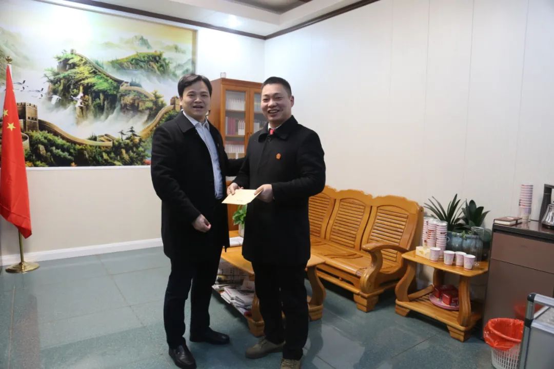 春节将至,1月28日,衡山县人民法院党组书记、院长周龙带领班子成员对我院获得全国先进、省劳模等荣誉的优秀干警和困难干警进行春节慰问。