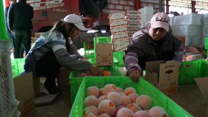 在基地里,工人们将一个个硕大金黄、散发着沁人清香的沃柑剪下,细致挑选、打包装箱、发货。与往年相比,今年基地积极拓展线上销售模式,增加电商果的包装盒规格和种类,以满足消费者的不同需求,同时也扩大沃柑的销售市场。
