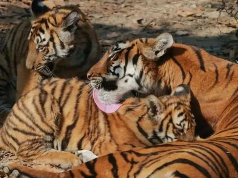 饲养员介绍,由华南虎妈妈带着2只虎宝宝同时面对游客,这样的展出方式在上海动物园属首次。游客不仅能观赏到老虎个体的雄姿,还能看到虎妈妈带着宝宝共同生活的场景,展示华南虎的带娃育儿等自然行为。