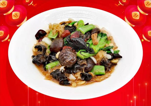 第一步:金针菇、鱼耳、木耳、雪耳、竹笙、发菜、腐竹、粉丝,全部浸泡2小时,清洗后沥干水份。第二步:蘑菇、鲜冬菇、荷兰豆、红枣、清洗后沥干水份。