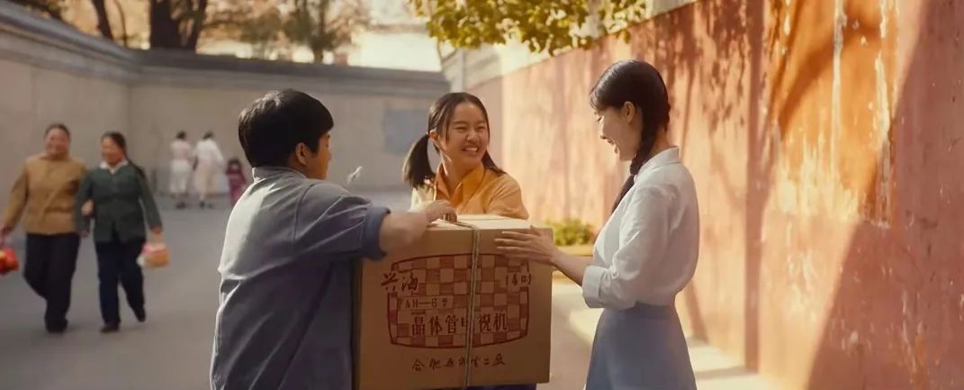 《我和我的祖国》中街坊邻里一起看电视的场景。©《我和我的祖国》早在1936年,英国就开始了电视广播。1954年,第一台彩色电视机在美国问世。在全球各个发达国家尽情享受着这个新洋物的50年代后期,天津712厂终于靠自主研发造出了中国第一台黑白电视机“北京牌820”。在那个靠喇叭传声的年代,电视画面带来全新的奇妙世界。但高难技术意味着零星产量。1973年底,北京电视机厂成立,年设计生产能力仅为黑白电视35,000台、彩电15,000台。除了需要特定的购买票,一台黑白电视机约700元,相当于一位普通工人两年的全部工资。