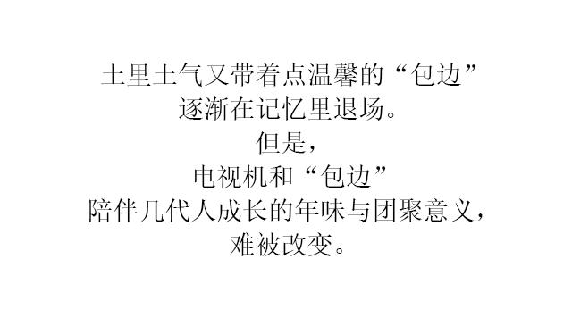 变化总在发生,有的是成长,有的是失去。电视机上如今也很难再看见一块“土洋”包边,电器们要么光秃秃,要么被惨白的防尘布笼罩。五颜六色充满设计感,土里土气又带着点温馨的“包边”逐渐在记忆里退场。但是,电视机和“包边”陪伴几代人成长的年味与团聚意义,难被改变。虎年将至,又是归家的季节,全家人相聚屏幕前的场面分外温馨。今年春节,你和家人将以什么样的方式在一起呢?