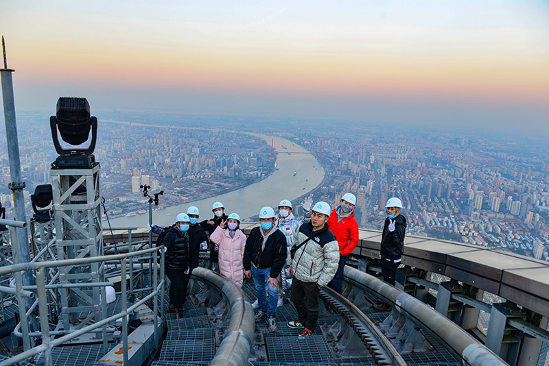 12月19日到12月26日期间,春晚节目摄制组来到了上海进行拍摄。期间,摄制组先后5次登上了上海中心楼顶拍摄,共计78人次。上海中心各方面的保障工作人员,克服天气严寒、人手紧张等困难,全力做好各项保障工作——防疫查码,人员信息核对登记、证照查验、高空作业安全教育、交底等等,该有的步骤一个都不能漏掉、该遵守的规定一个都不能违反,在确保安全的前提下,及时响应并且贴心地做好有关服务工作:舞台地毯颜色太深不利于舞台效果,马上进行更换;拍摄设备用电量不够,临时扩充电容;无论摄制组是凌晨4点开始工作,还是拍摄到晚上7点,都有上海中心工作人员全程进行安全监护;气温骤降,上海中心工作人员为摄制组准备热水和棉衣、餐食,安排临时休息场所;风力突增,安排人员测风速评估安全状况,并提醒摄制组及时根据天气情况调整拍摄计划……就这样,节目在上海中心部分顺利拍摄完成。
