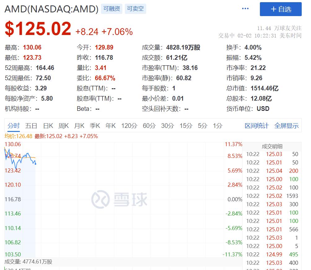 谷歌母公司字母表(Alphabet)周二盘后公布了全面超出分析师预期的2021年第四季度财报。财报显示,公司的营收、每股收益以及运营利润等关键指标均明显超出预期。公司股价2021年全年累计上涨65%,领跑美股龙头科技股,65%的年度累计涨幅是纳指的三倍。此外,公司董事会已批准,以一次性特别股息的方式对字母表的A类、B类和C类股进行20比1的拆股,若经股东大会批准,今年7月1日前登记在册的股东将于7月15日盘后每股获得额外19股。另外,芯片巨头AMD也大涨超7%。此前公布的财报显示,第四季营收同比增49%,经调整后每股收益同比增26%,高于分析师预期。该公司还给出了超预期的业绩指引。